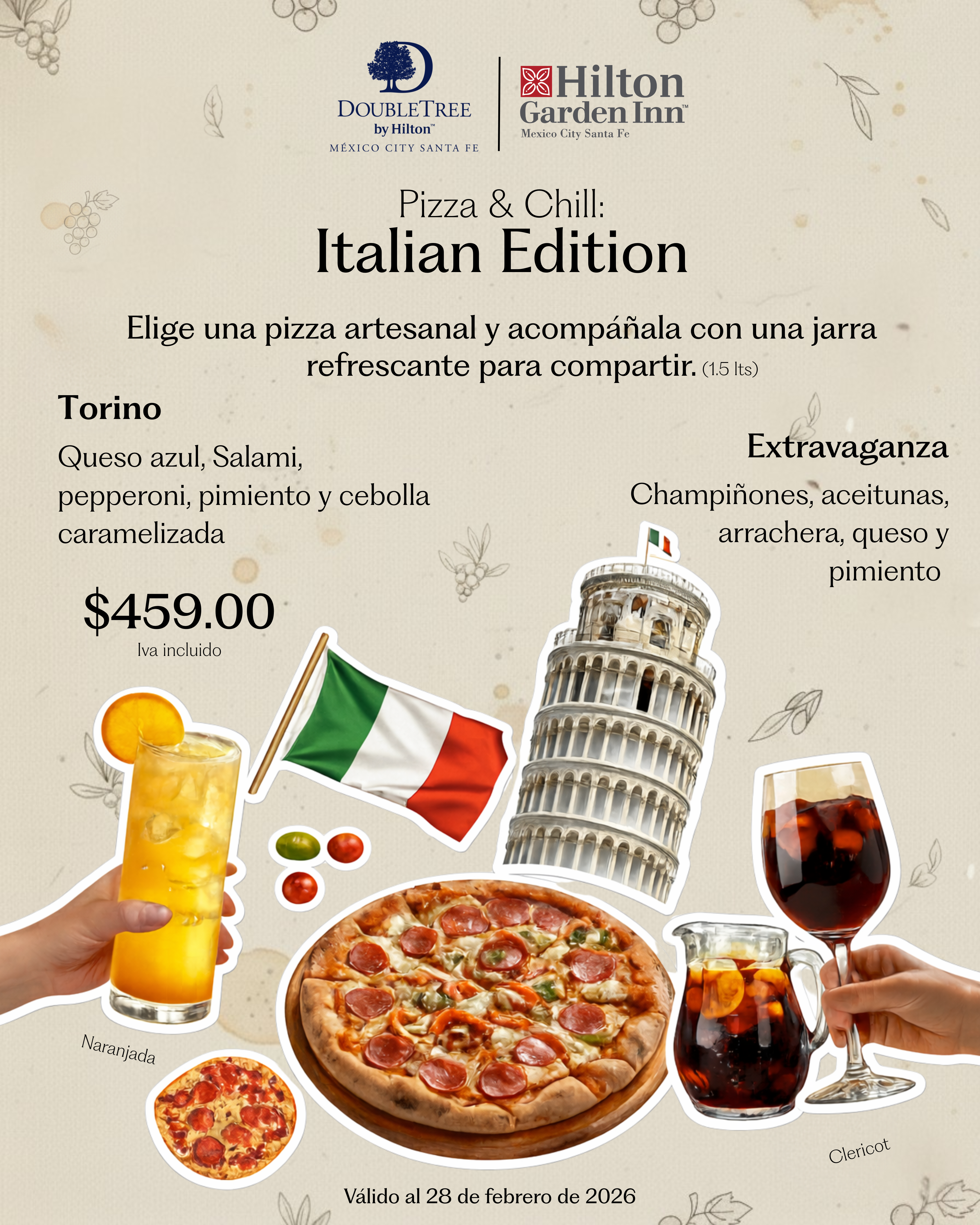 Enjoy breathtaking city views and exceptional amenities in our rooms, including an international restaurant, versatile event spaces, 24-hour fitness center, heated pool, soothing Spa, complimentary Wi-Fi, secure parking, and convenient access to Expo Santa Fe, Parque La Mexicana, premier shopping centers, and corporate headquarters of leading industry companies.